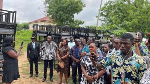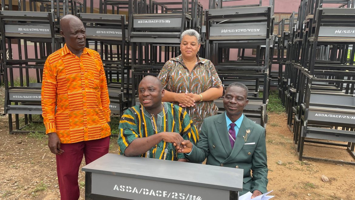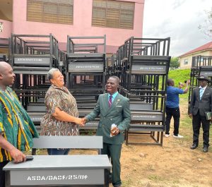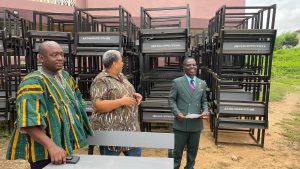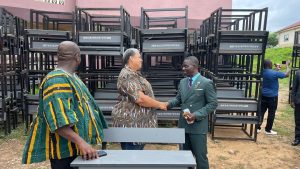 DISTRIBUTION OF DUAL DESKS February 16, 2026February 23, 2026 in The DCE and the MP handed over school desks to the Acting Education Director on the 16th February 2026 at the forecourt of Awutu Senya District Assembly to be distributed among schools in the district.